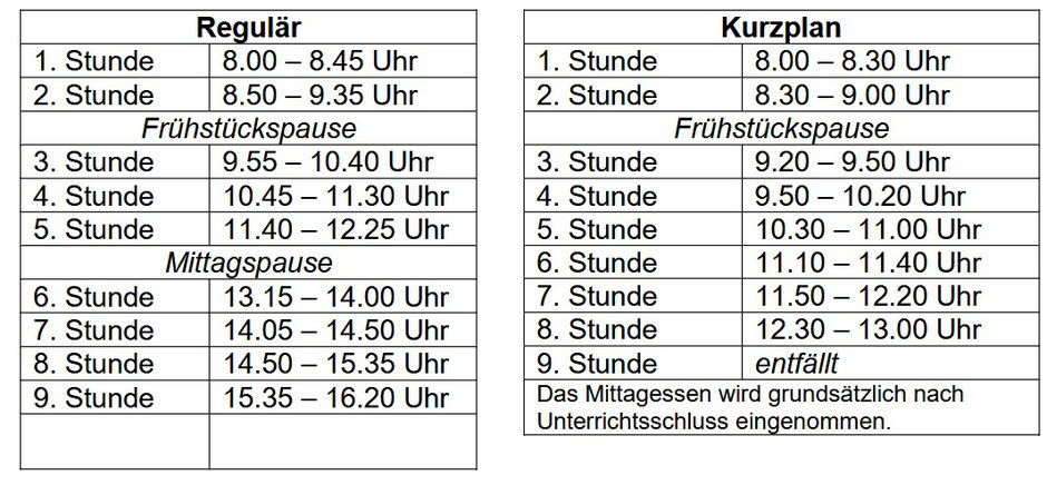 Unterrichtszeiten